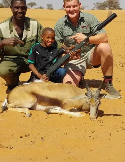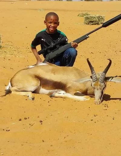 Hendrik: Last week, I had the privilege of hunting with Adam, a seven-year-old Bushman. We went south, where he hunted for a springbok. This hunt was vastly different from what I was used to, as he was quite young and inexperienced. Witnessing Adam hunt his first animal and spending time with him was an amazing experience.