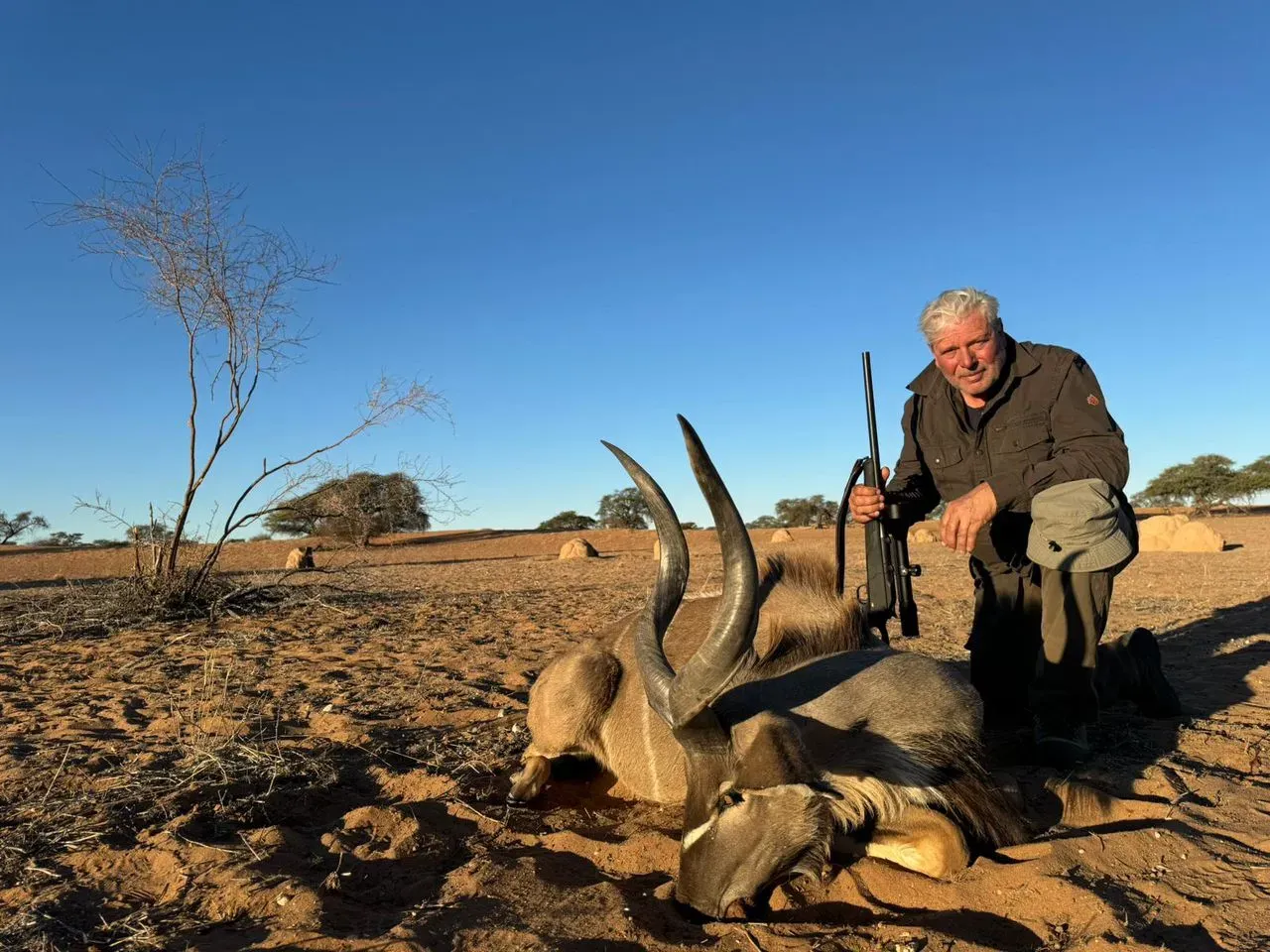 Last week was one for the books. I had the privilege of guiding a Scottish grandfather and his grandson on their first hunt here in Namibia. The boy was a bit nervous at first—who wouldn’t be? It’s a big step hunting game for the first time. But as soon as he climbed onto the truck and got into the rhythm of things, you could see the anxiety melt away. Watching him take his first shot and seeing the pride in his grandfather’s eyes—that’s what makes this job so rewarding. We even honoured the tradition of smearing oryx blood on his face to celebrate his first buck, a moment neither of us will forget.