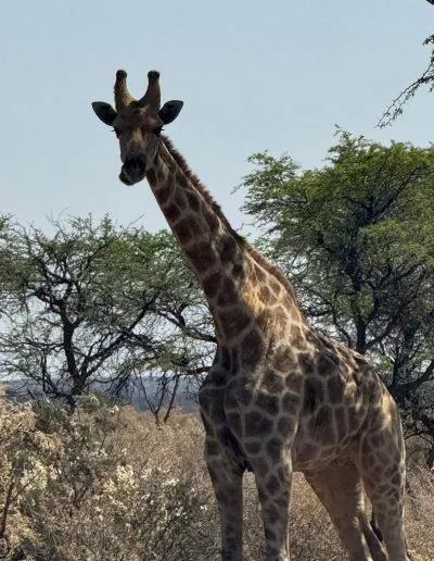 Last week, we had a memorable trip to a farm near Gobabis, where we were on the lookout for a Gnu. Our first stop was the farmer’s house, and as we stepped out of the car, an unexpected guest greeted us — a friendly, tame ostrich! It was quite a surprise to see this curious bird making its way up to say hello. The farmer shared that it’s the only one on the farm and loves visiting the house. Moments like these remind us of the charming quirks of life on the farm.